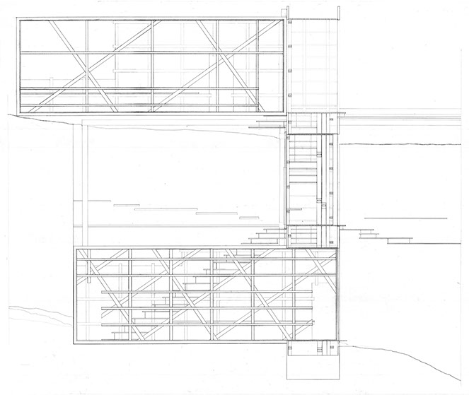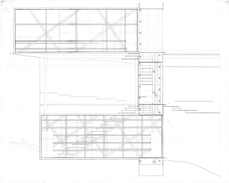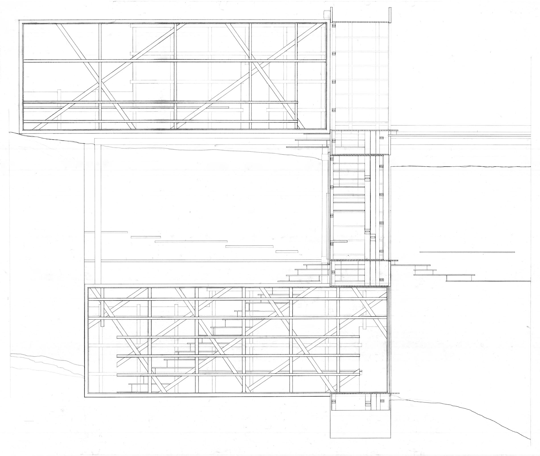 The site for this project is located on the east shore of Cayuga Lake in Lansing NY. The main characteristics of the site are a stream running through a natural gorge and the forty-foot bluff that drops from the site to the level of the lake below. The program for this project is an architect's combined dwelling and studio.