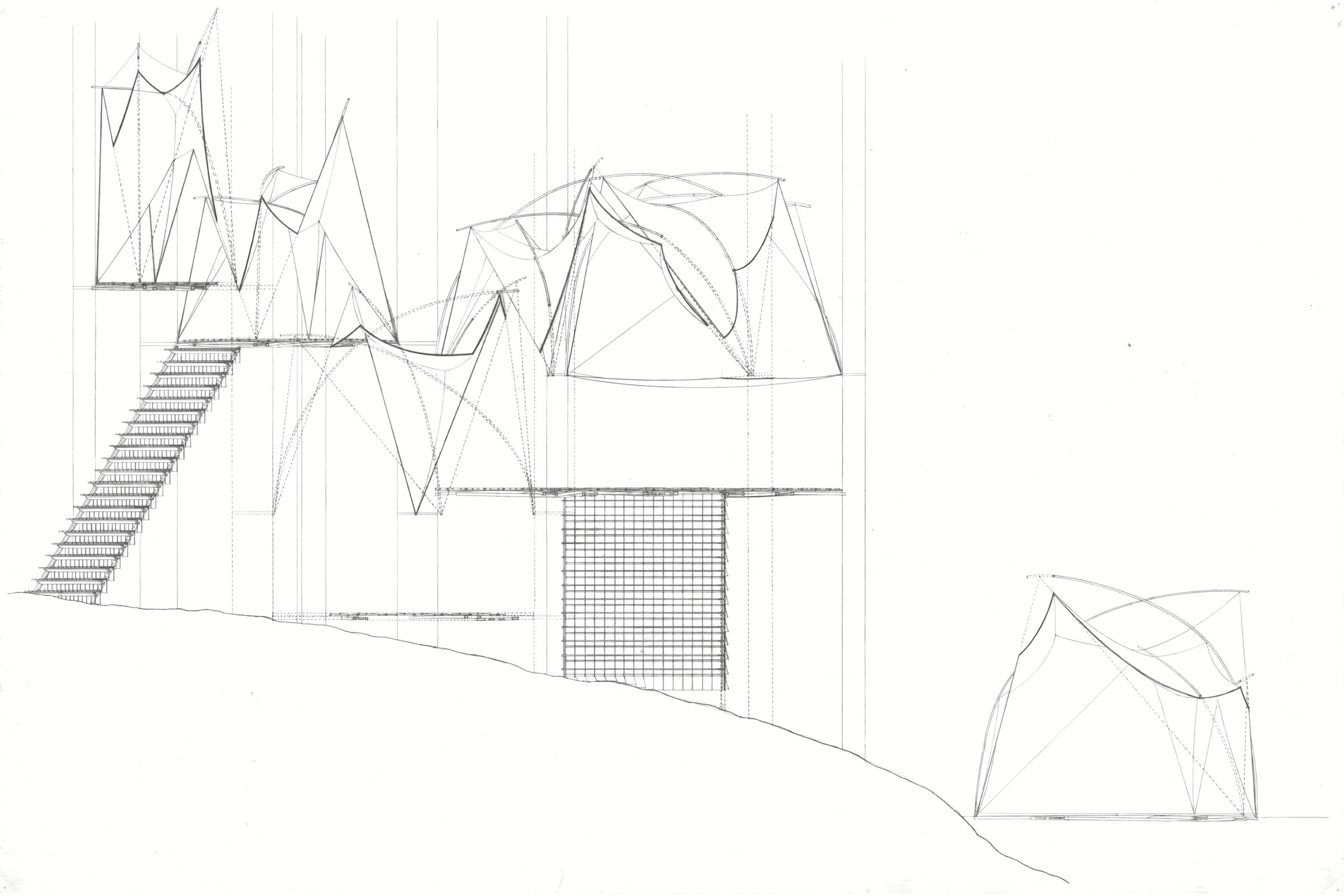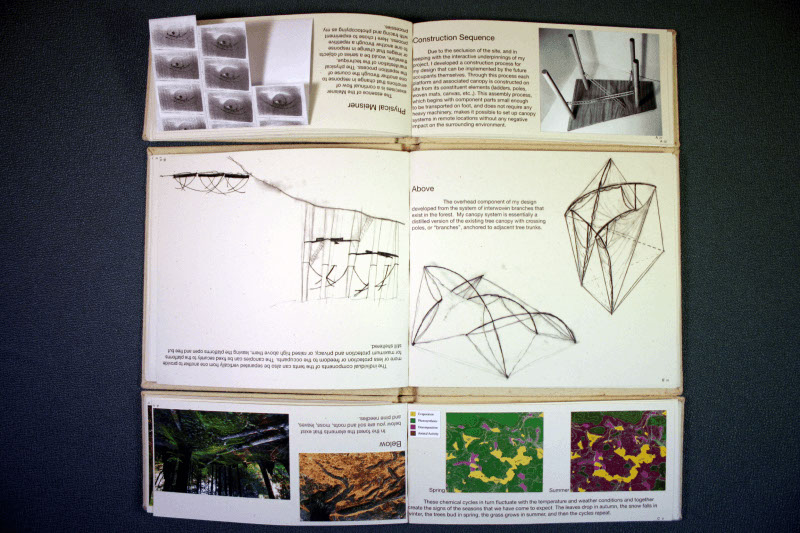 This design is based on the principles of the Meisner acting technique in which acting is a matter of true and honest reaction. Thus the design developed through close interaction with and reaction to the site and the natural elements and cycles that already existed there. True to the technique the finished design seeks to facilitate continuing interaction and reaction between the inhabitants and the natural environment.