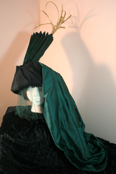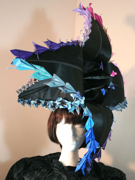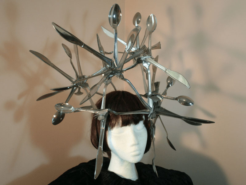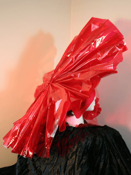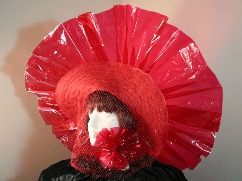 The specifications for the hats were simply that they be as extreme and varied as possible. The only other specification was from the managing director that they cost as little as possible to make. Thus the inspirations and materials for the finished line of hats came almost entirely from supplies found in attics, thrift stores, and dollar shops.