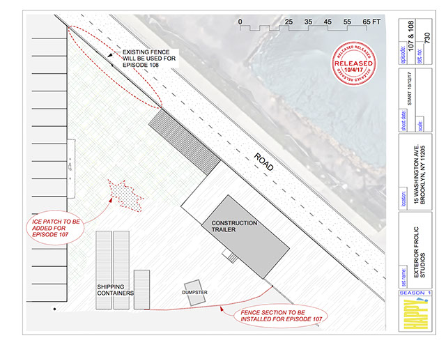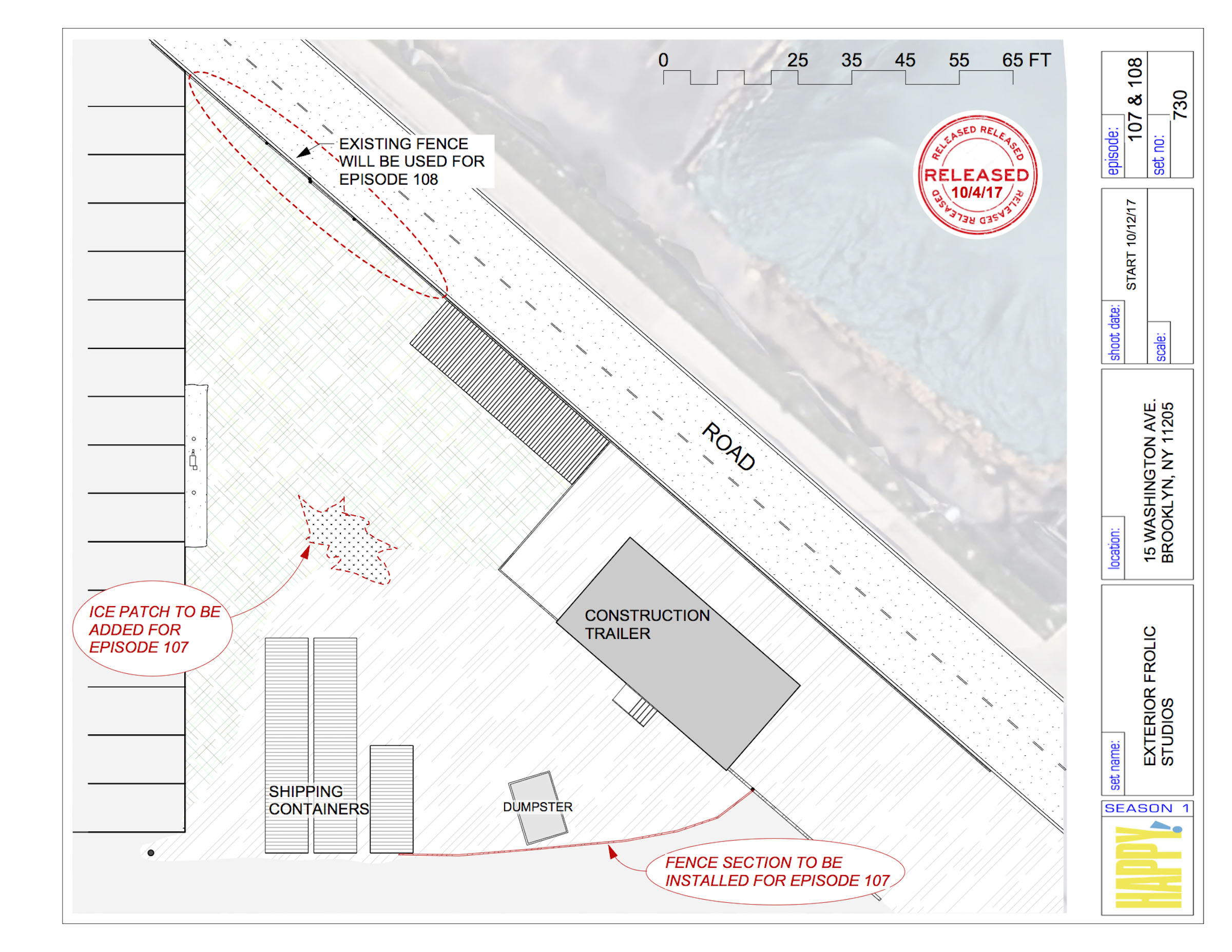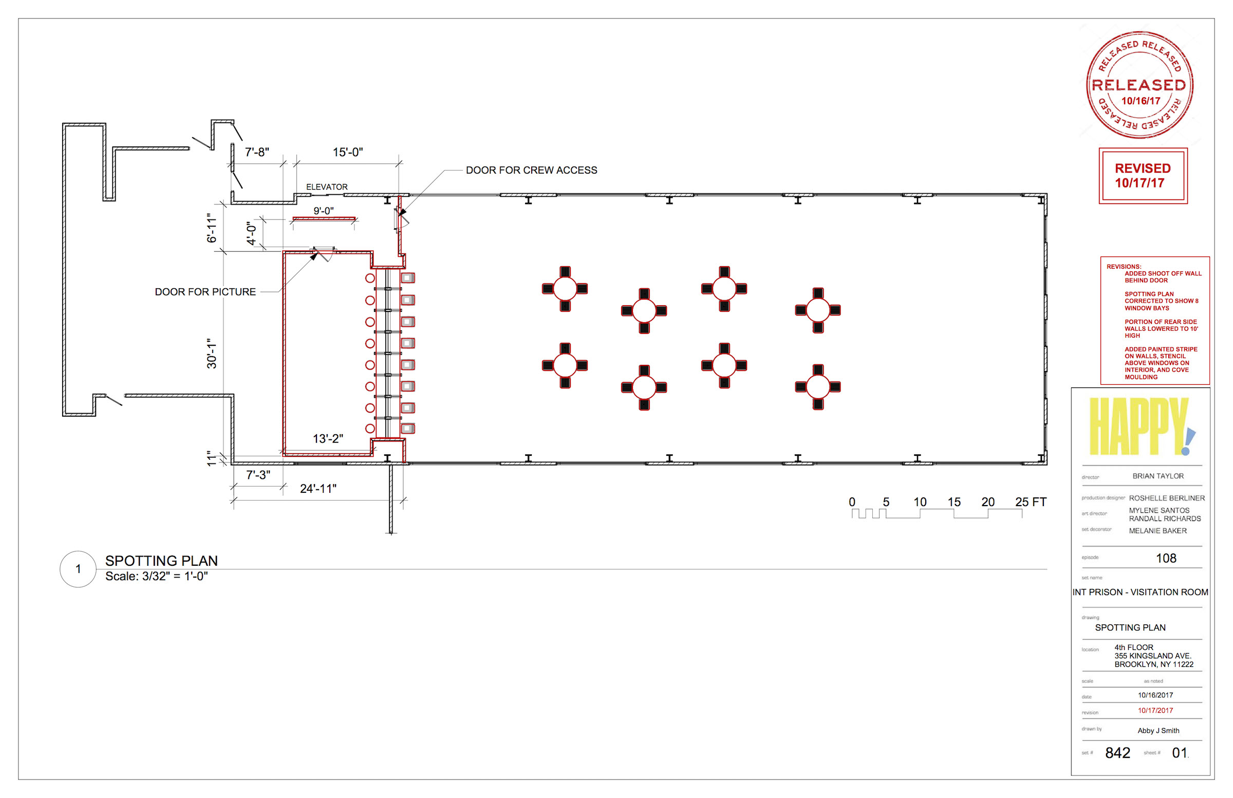 I was Assistant Art Director for the second half of production on this show. I was responsible for surveying locations, creating construction drafting, spotting plans, director's plans and occasionally previs renderings.