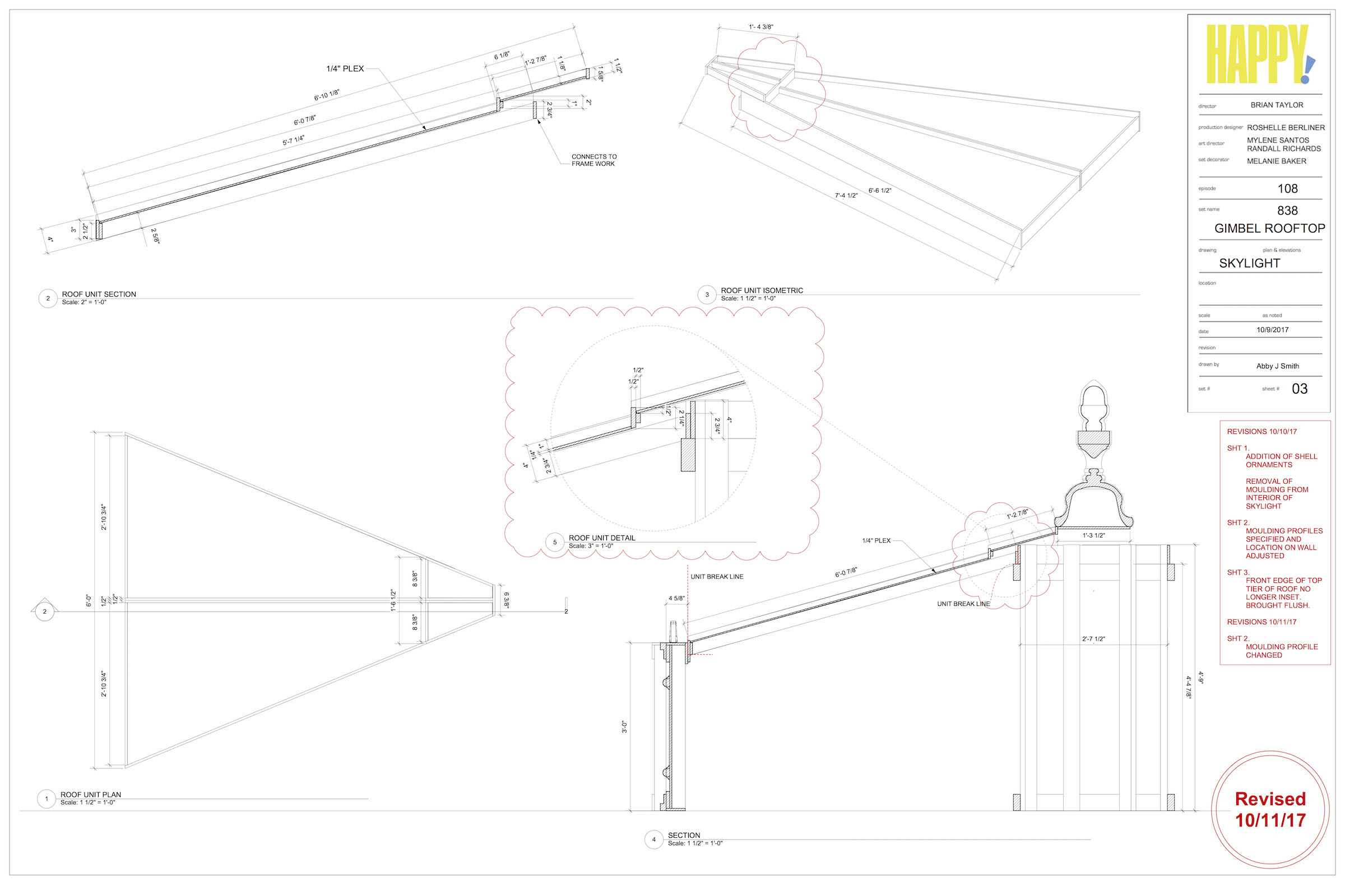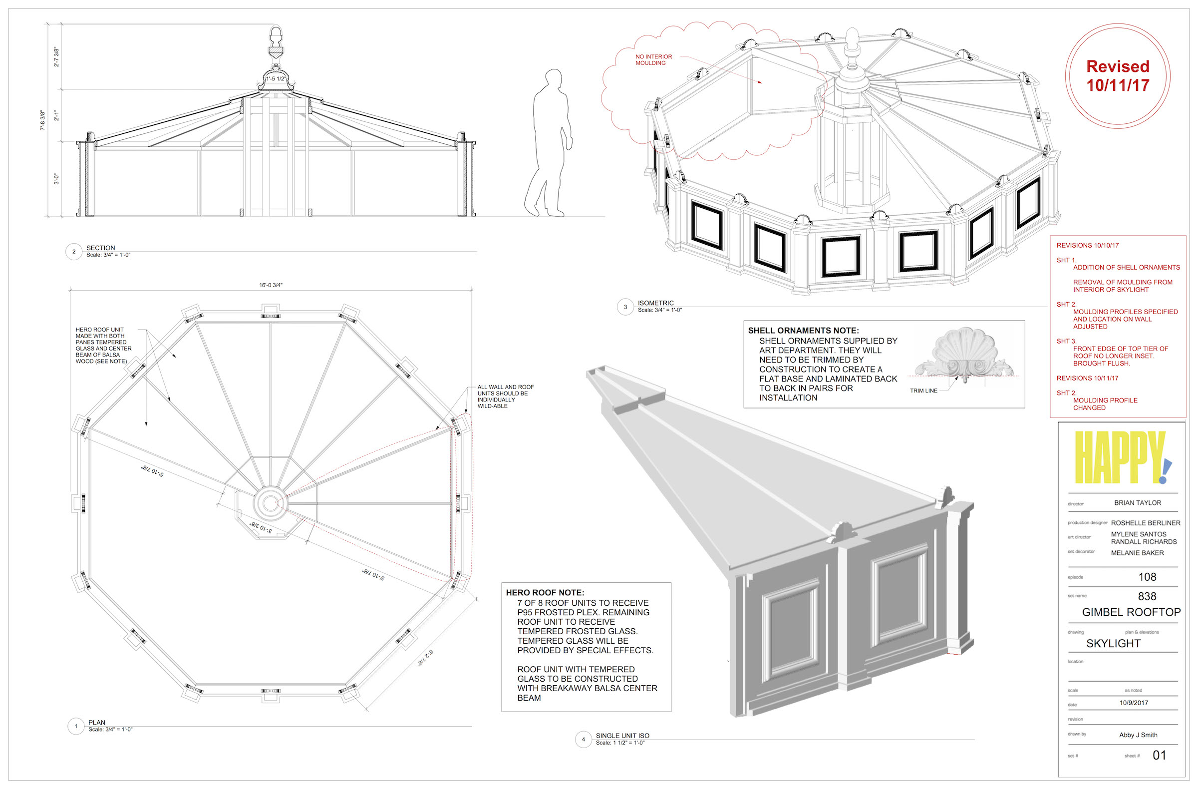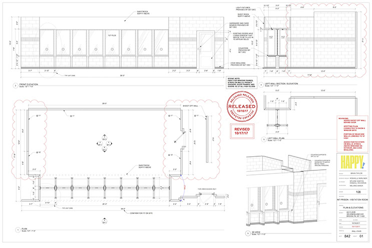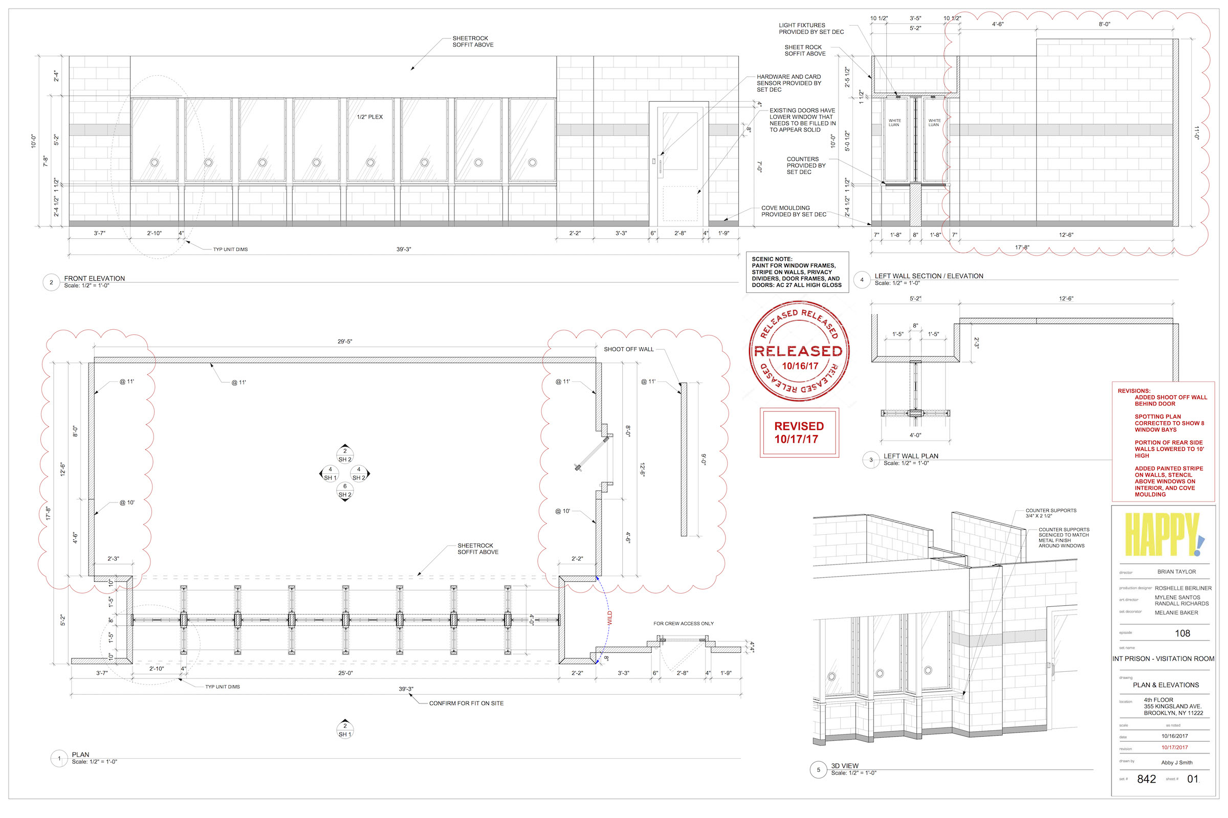 Included here is a sampling of my work on the production: Construction drafting for two location based sets (one with spotting plan) as well as a couple director's plans.