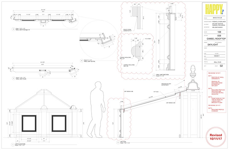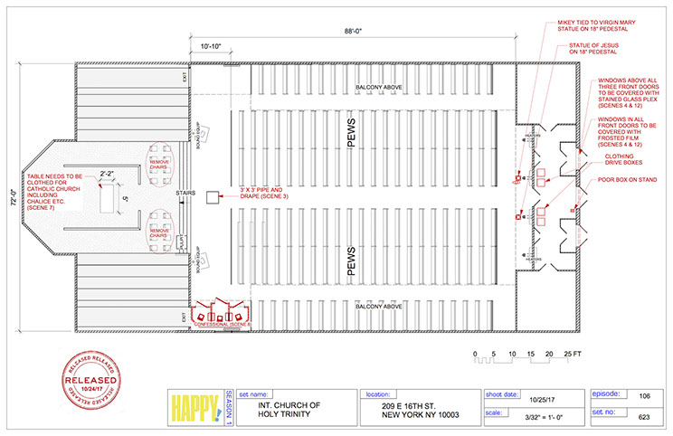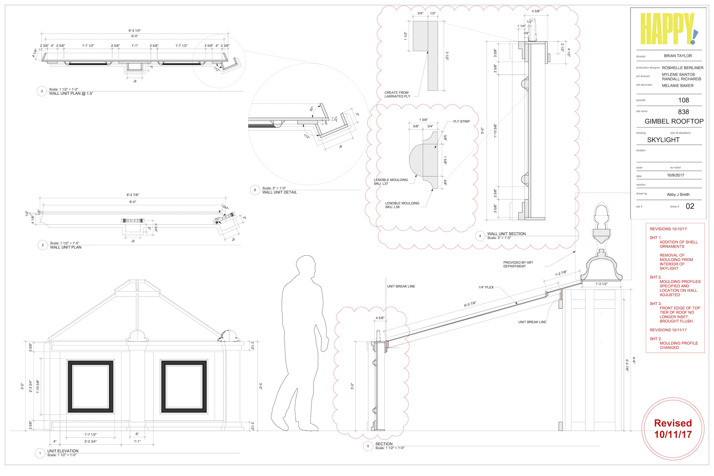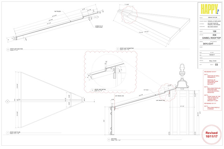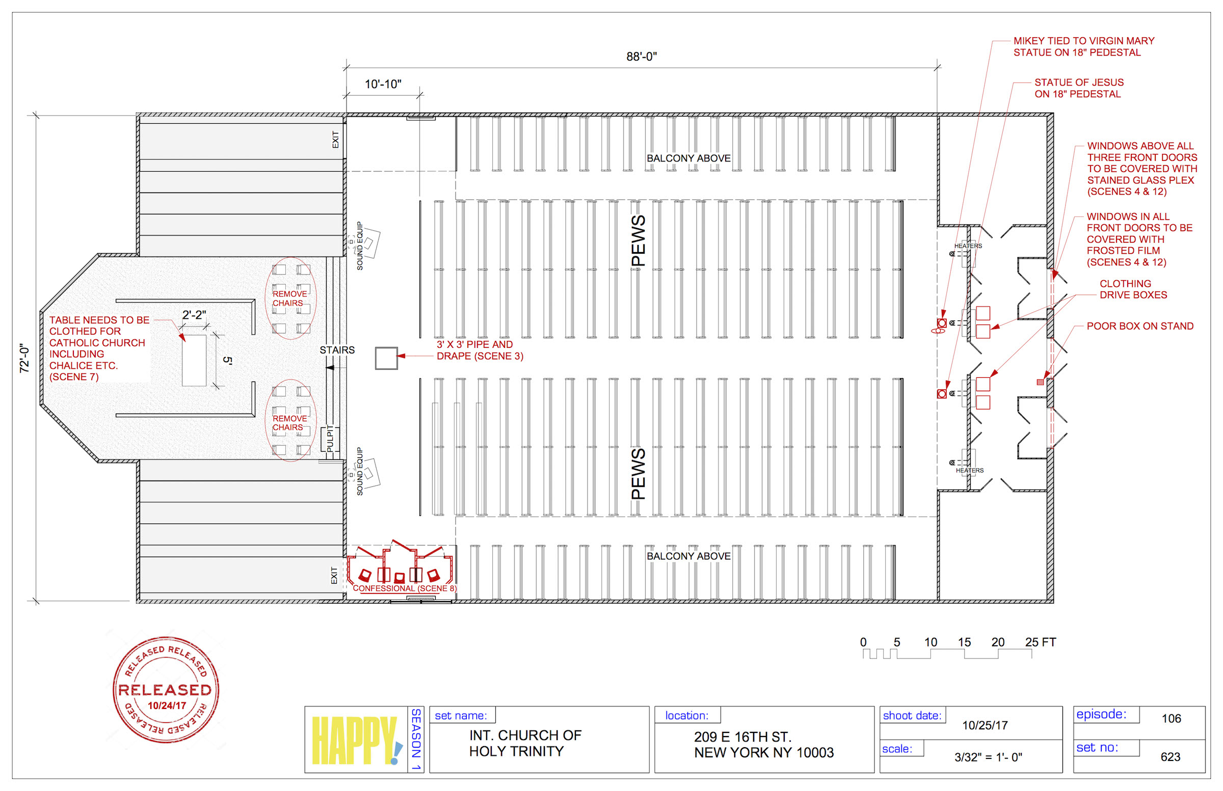Included here is a sampling of my work on the production: Construction drafting for two location based sets (one with spotting plan) as well as a couple director's plans.