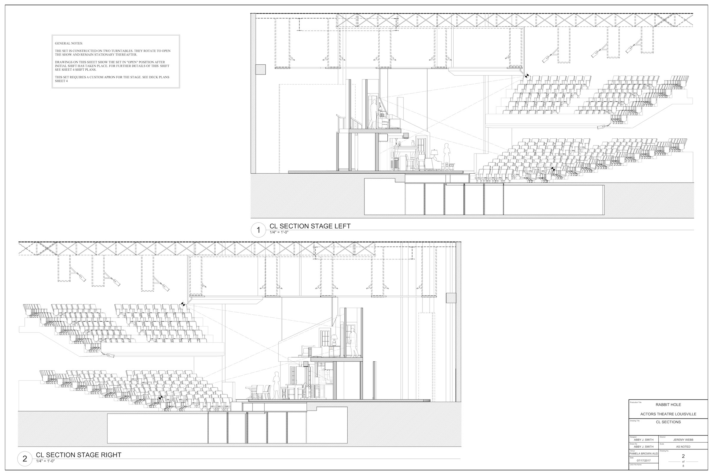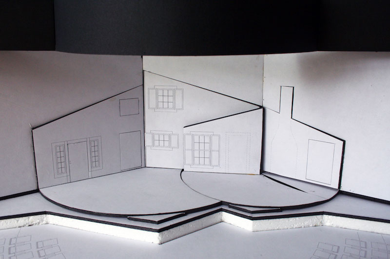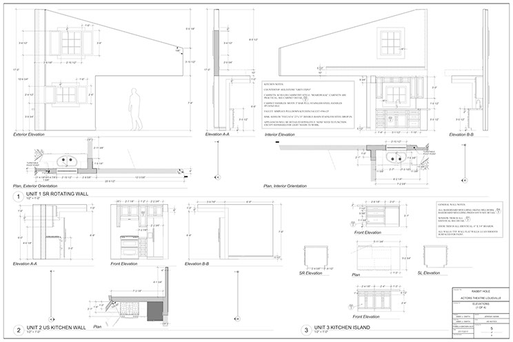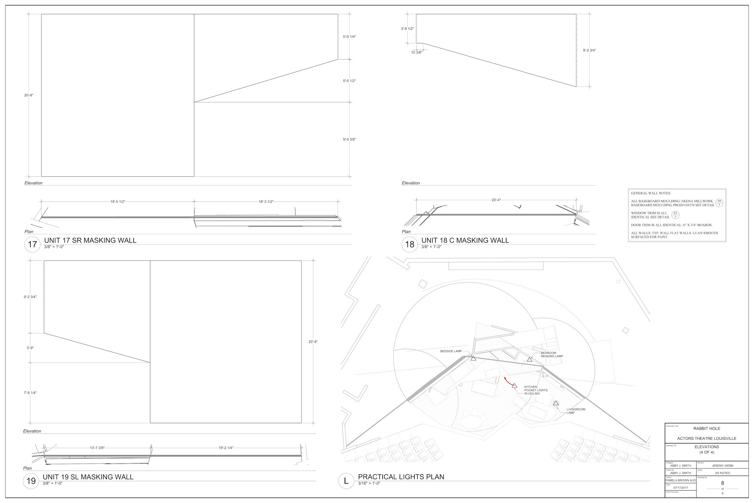 Drafting and paint elevations here are from the redesign of the Actor's Workshop produced design above. This redesign, which is for a much grander production of the play, was completed for my Local USA 829 application presentation. Renderings and images of the model can be found in the Set Design section above.
