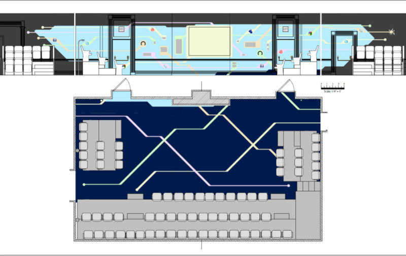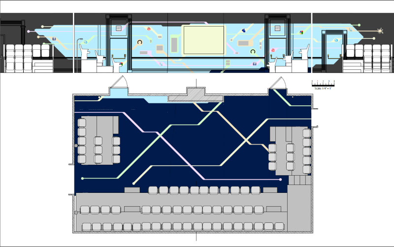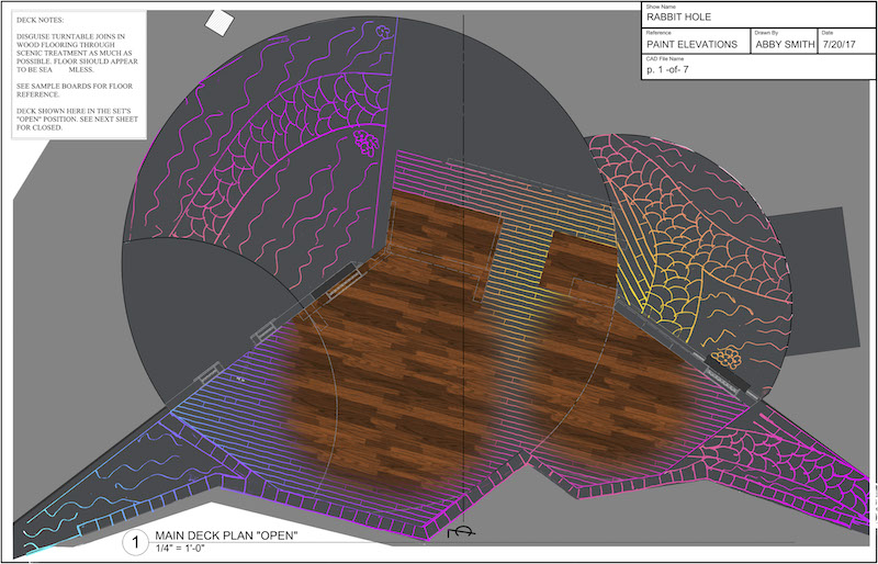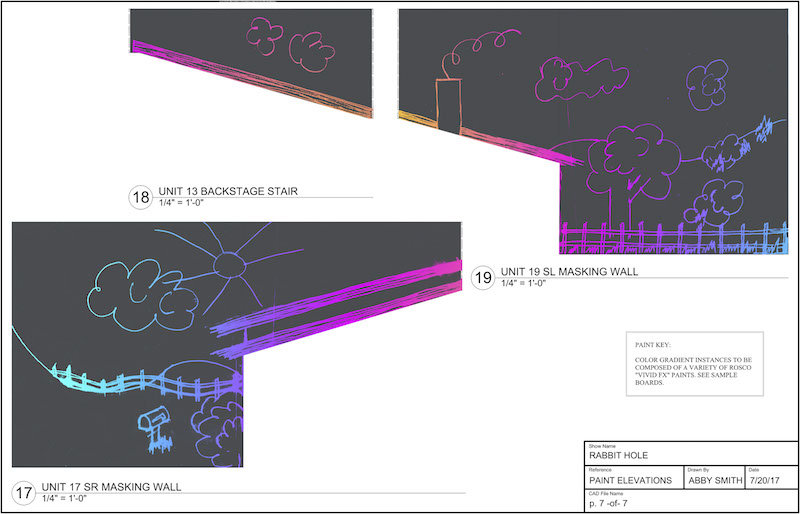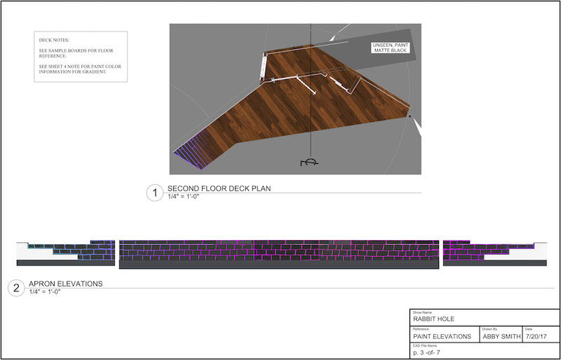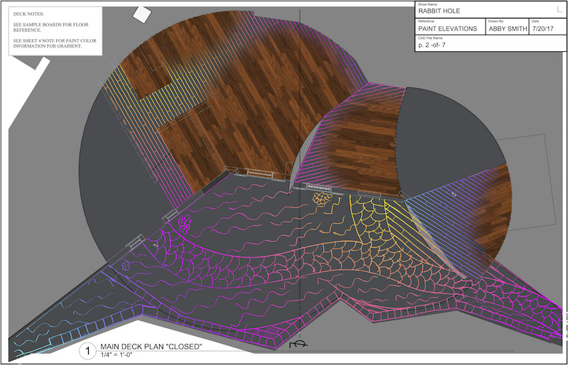 This second set of images is of a redesign I completed for Rabbit Hole at a much grander scale. This redesign was completed for my Local USA 829 application presentation. Full drafting and paint elevations for this design can be found in the Drafting/Paint Els section later on this page.