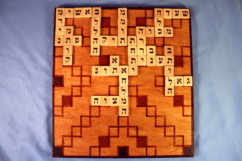 It was not desired that the board and tiles be historically accurate to the beginnings of the game of scrabble but rather that they lend to the portrayal of a mythical ancient beginning to the game. The board needed to incorporate a plausible beginning rendition of the bonus system, which is a feature of the modern board, and both board and tiles needed to be simple, plausibly created by the technology of the time.