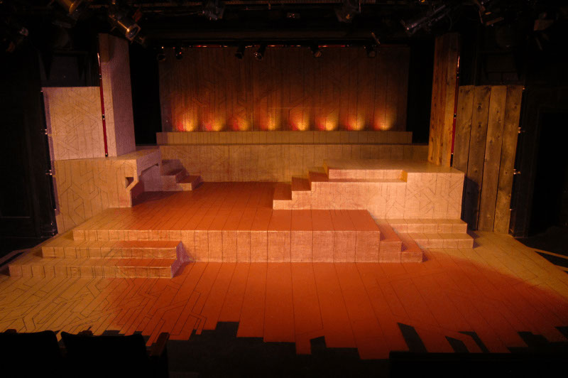 The versatility of the set to portray an array of locations (interior and exterior), give a sense of the period, and then completely transform for rock songs was paramount to the design. Burlap cloth as a facing material and as a scrim backdrop in front of the band was chosen to speak of 1890s Germany as well as providing possibilities for back lit rock numbers.