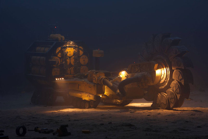 I was one of three senior model makers at Weta Workshop involved in the fabrication of these miniatures. We worked closely with the designer in order to provide quick implementation of new ideas for consideration. The final approved models were 3d scanned for use by Weta Digital in developing the CG world and then shipped to Amblin for use as a visual aid by the main unit.