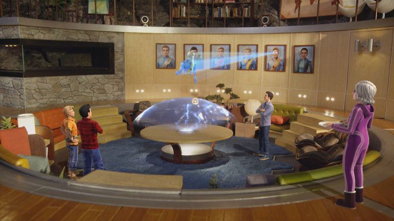 Tracy Mansion living room. Practical miniature and lighting. CG characters & hologram