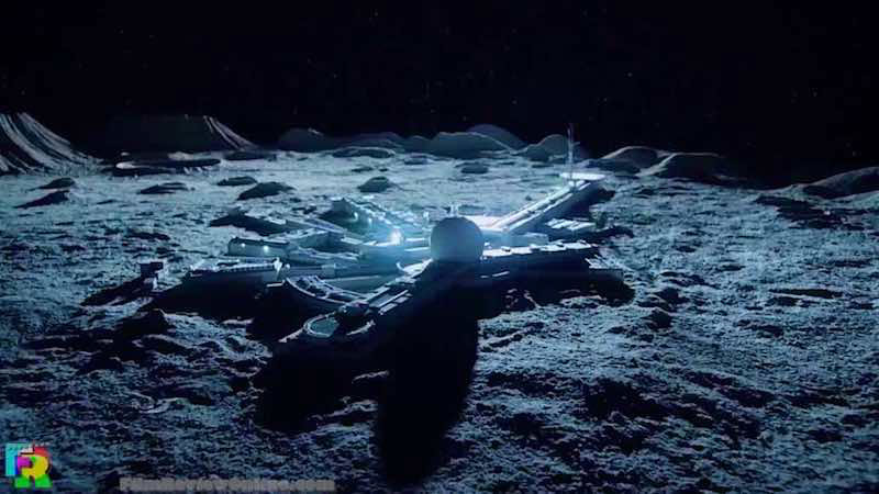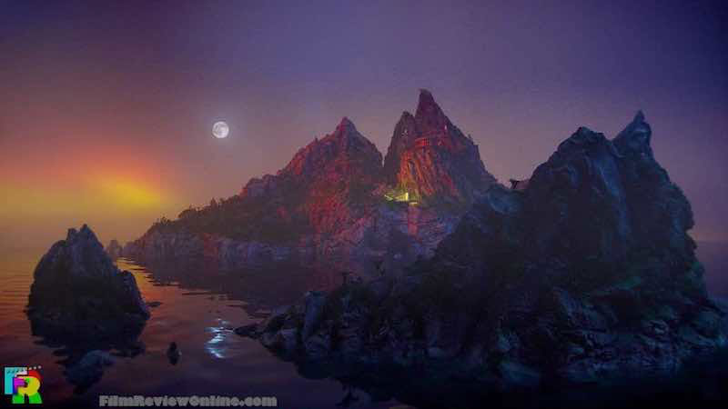 Tracy Island evening. Practical miniature and lighting. CG moon