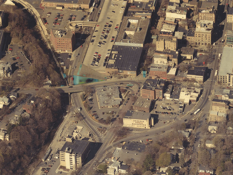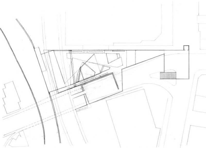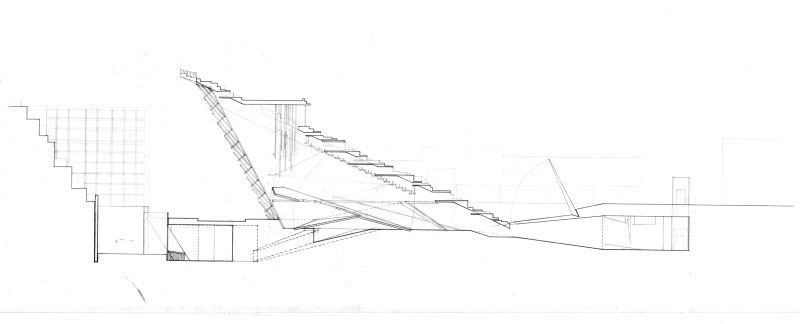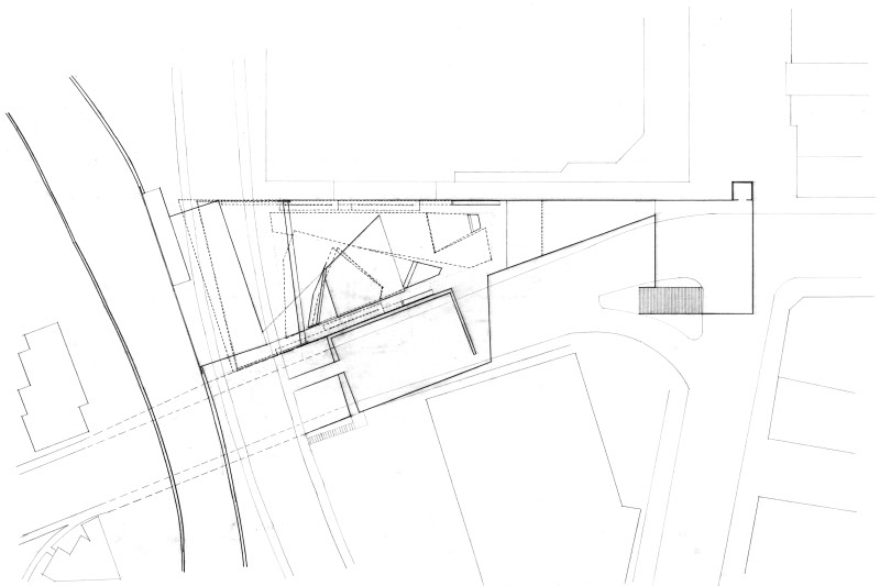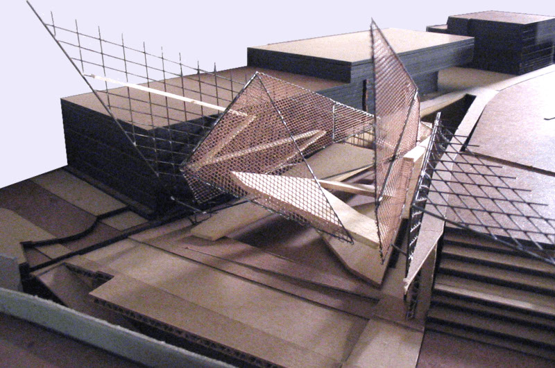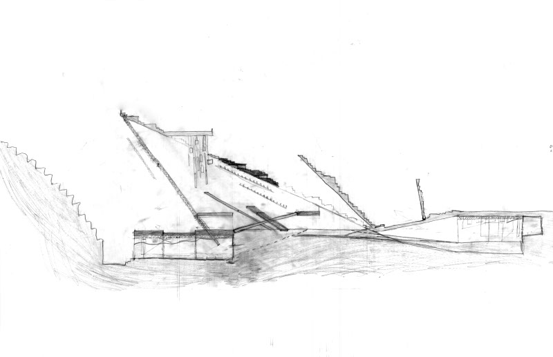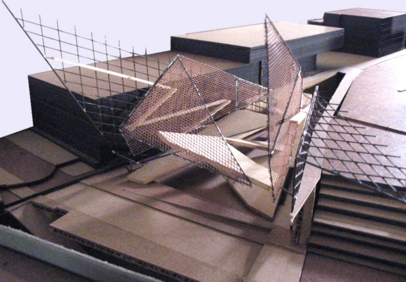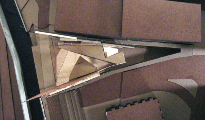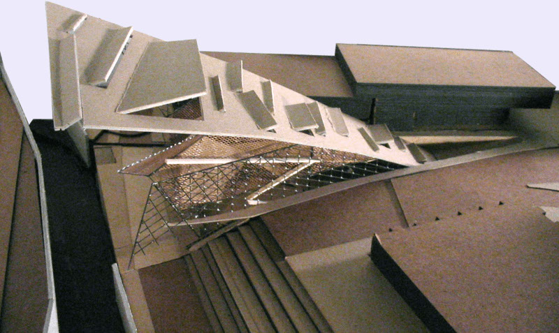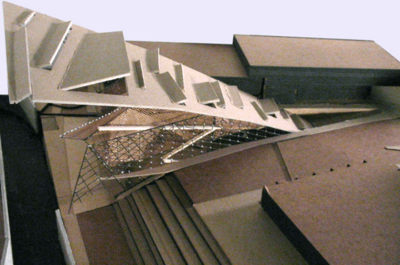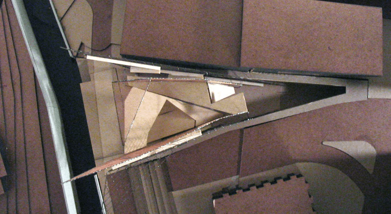 The site for this project is in downtown Ithaca NY, it sits adjacent to a creek and an overpass and thus between three different levels of the city. The program is a science fiction museum that must contain exhibition spaces, a science fiction library, and a large auditorium versatile enough to accommodate both live, and media presentations.